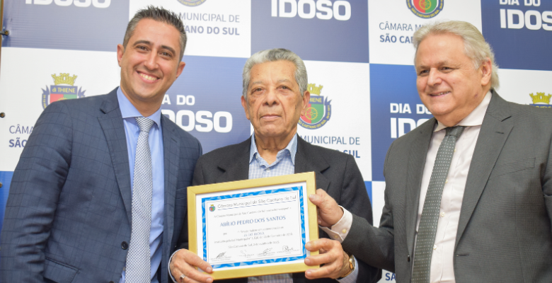 desenvolvimento da cidade. O presidente da Câmara Doutor Seraphim – PL, abriu a solenidade destacando os avanços na longevidade e a participação ativa da terceira idade na construção de São Caetano. “Recebê-los na nossa casa é uma honra. Nós, que integramos a terceira idade, temos muito a celebrar, como o prolongamento da vida e os progressos na área. Chegamos a uma fase da vida em que, longe de sermos inúteis, continuamos a ser fundamentais para a sociedade e para a cidade. Vamos trabalhar para que isso se amplie cada vez mais”, declarou.